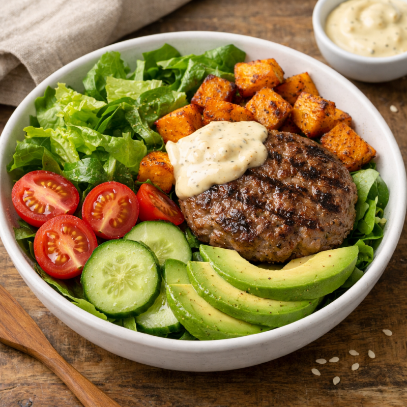 - Κόβουμε τη γλυκοπατάτα σε μικρούς κύβους και τη ψήνουμε στο φούρνο ή στο air fryer με λίγο ελαιόλαδο, αλάτι και πάπρικα μέχρι να μαλακώσει και να ροδίσει.