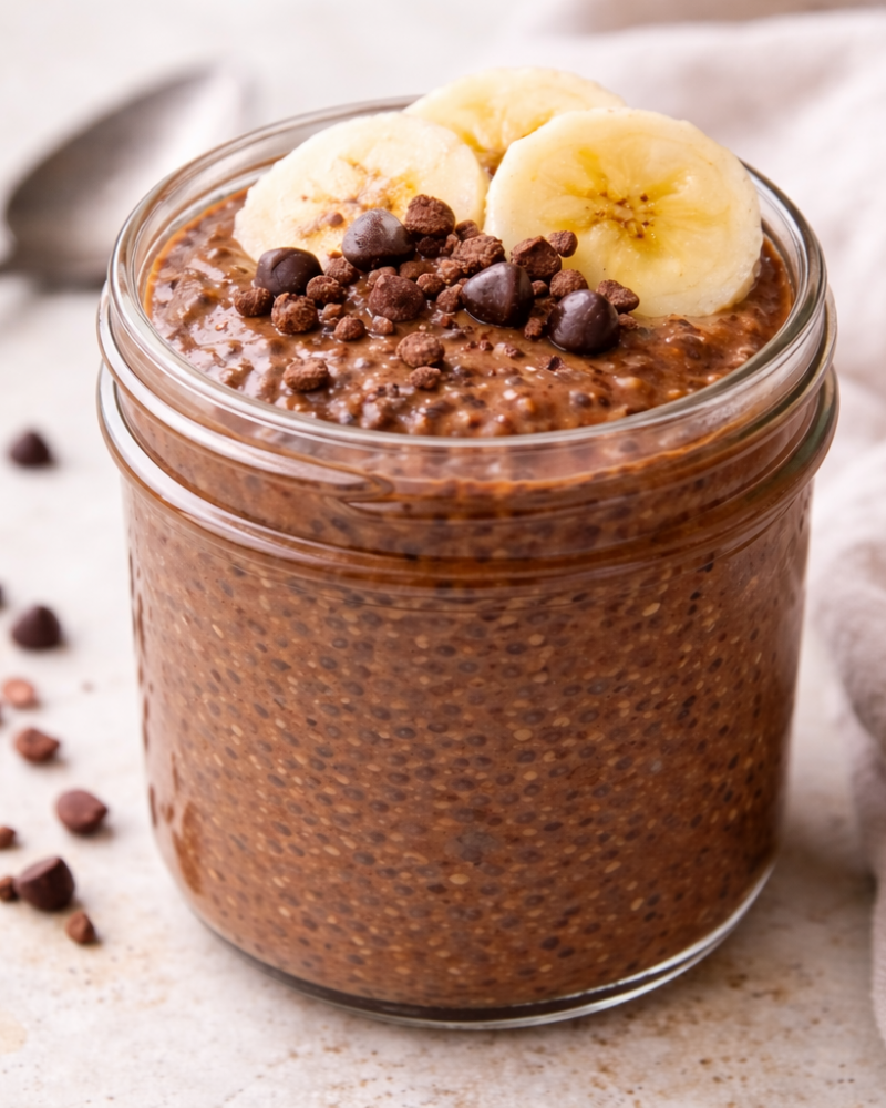 Σε ένα μπολ βάζουμε τους σπόρους chia, το γάλα και το κακάο.